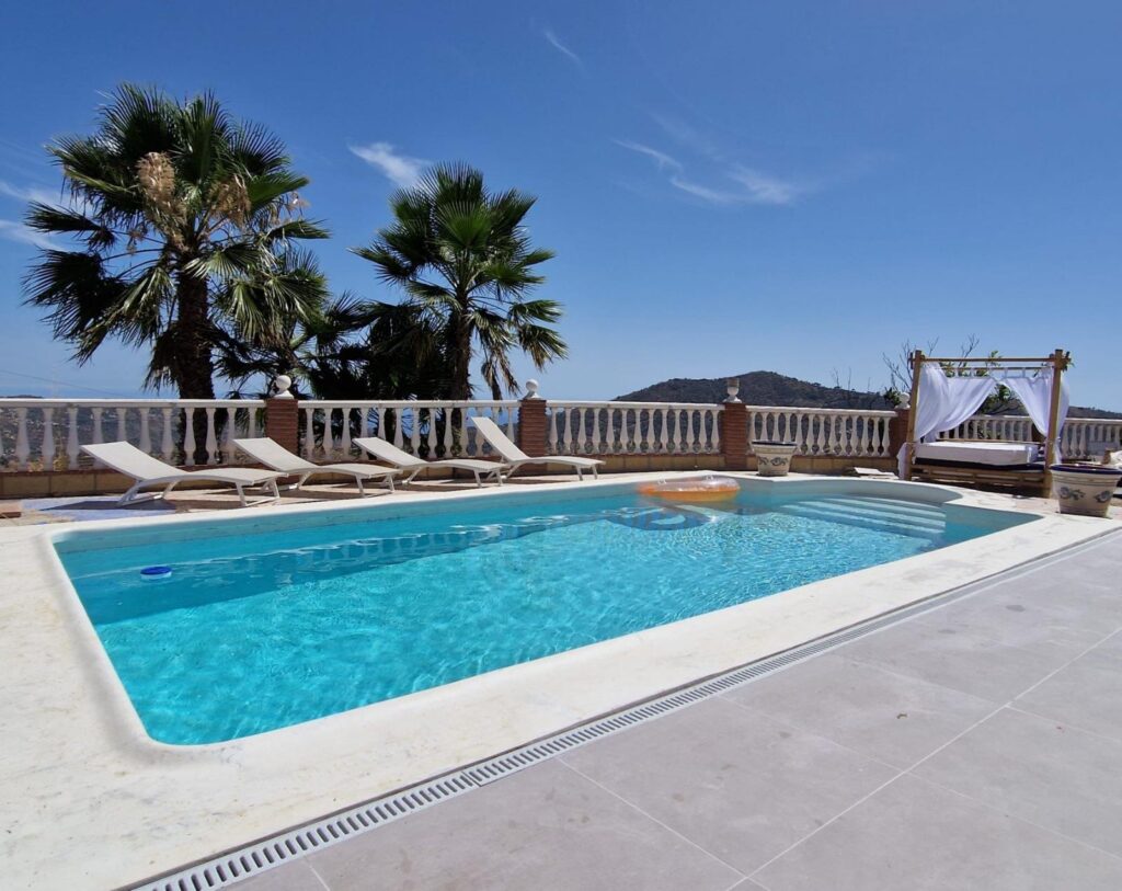 De geheel gerenoveerde 8 persoonsvilla is gelegen in een rustige omgeving en biedt een prachtig uitzicht op het prachtige berglandschap van de regio Axarquia, met de Middellandse Zee op de achtergrond.
